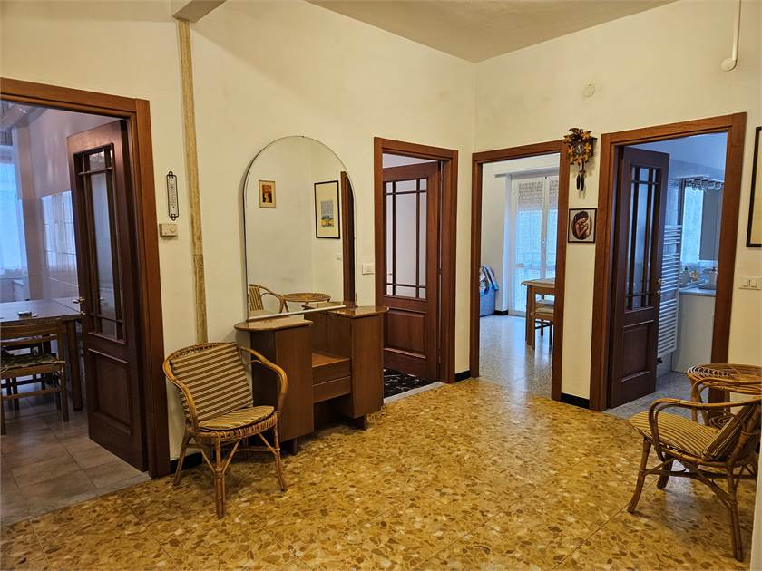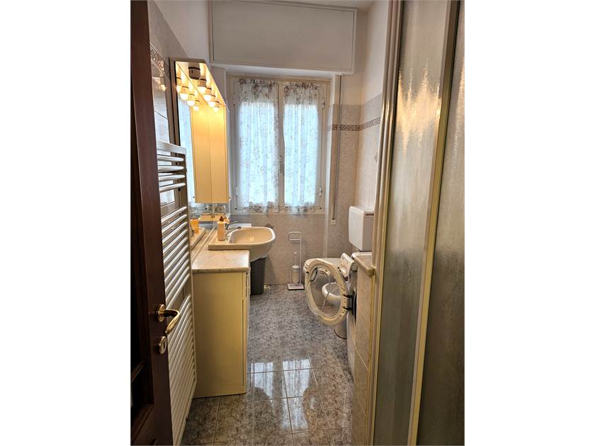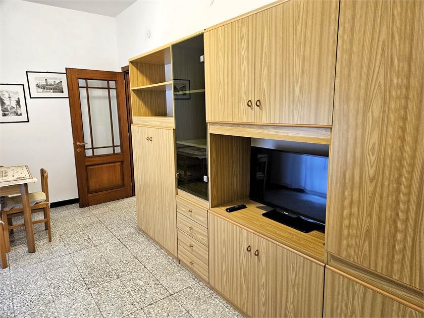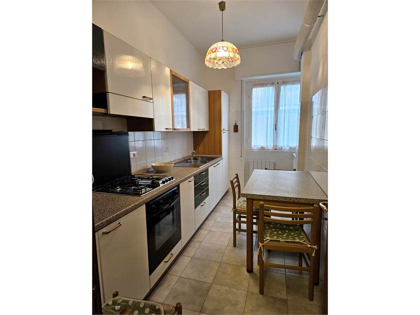 Spazioso trilocale in Viale Europa (30m. dal mare) in prossimità del mare e molto comodo ai servizi. Dotato di esposizione Nord-Est, sito al penultimo piano (4°) con ascensore. Composto da camera con letto matrimoniale, ampio salone con divano matrimoniale e letto a scomparsa, cucina abitabile, bagno con doccia, spazioso disimpegno con branda paggetto, ripostiglio e terrazzino con vista mare. Riscaldamento autonomo, gas metano e caldaia a gas (frigo col freezer, lavatrice e televisore).