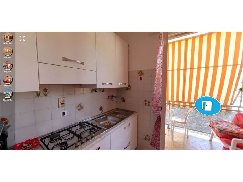 A pochi passi dal mare, comodissimo alla passeggiata del centro storico ed alla stazione, gradevole alloggio con vista aperta in Piazza Palmarini (50 m. dal mare). Dotato di esposizione Ovest, sito al primo piano con ascensore a livello terra. Composto da una camera con letto matrimoniale e letto a castello, cucina abitabile recentemente arredata a nuovo, bagno, ingresso, ripostiglio e balconata. Riscaldamento centralizzato, gas bombola e scaldabagno termoelettrico (frigo col freezer, lavatrice e televisore).