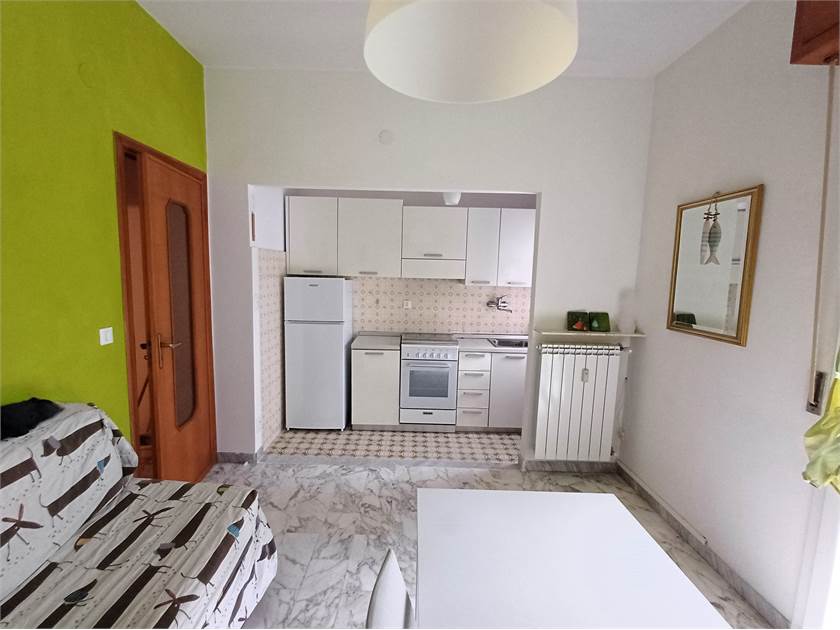 Appartamento luminoso inserito in un complesso residenziale immerso nel verde, chiuso da cancello automatico, in zona Viale Repubblica a 200m. dal mare. Dotato di vista aperta e di ottima esposizione Sud-Ovest, sito al penultimo piano (2°) senza ascensore. Composto da una camera con letto matrimoniale e letto singolo, soggiorno con angolo cottura e divano matrimoniale, bagno ristrutturato con doccia, ripostiglio, ingresso e n°2 balconi. Posto auto condominiale, riscaldamento centralizzato, gas metano e boiler elettrico (frigo col freezer, lavatrice e televisore).