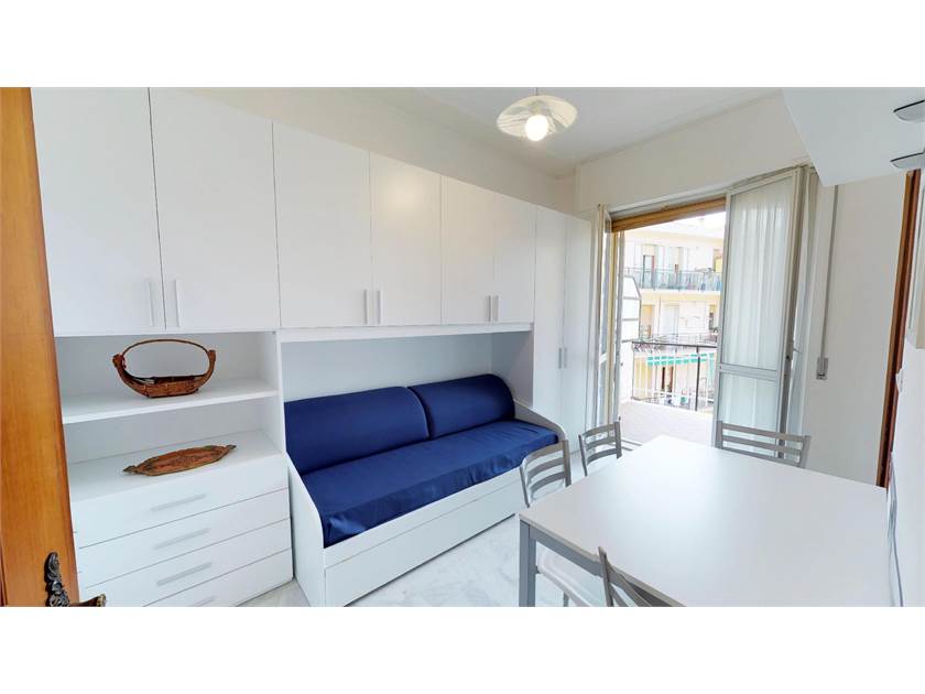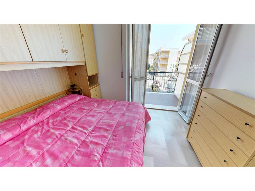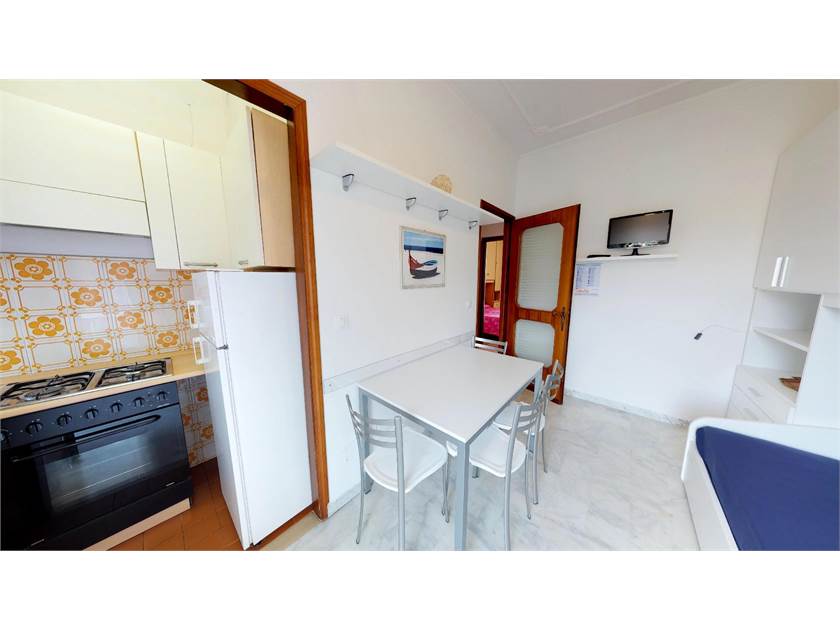 Alloggio parzialmente ristrutturato in zona Viale Repubblica a 200m. dal mare. Dotato di bi-esposizione Nord-Sud su lati opposti, sito al penultimo piano (3°) con ascensore. Composto da una camera con letto matrimoniale e branda paggetto, soggiorno con angolo cottura e divano matrimoniale, bagno ristrutturato con doccia, ripostiglio, ingresso, balcone e terrazzo. Posto auto condominiale, riscaldamento centralizzato, gas bombola e boiler elettrico (frigo col freezer, lavatrice e televisore).