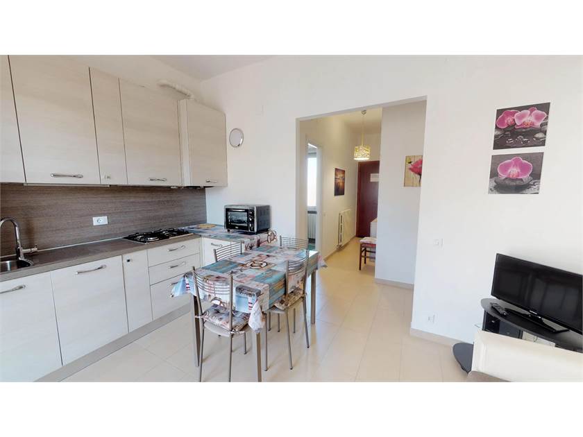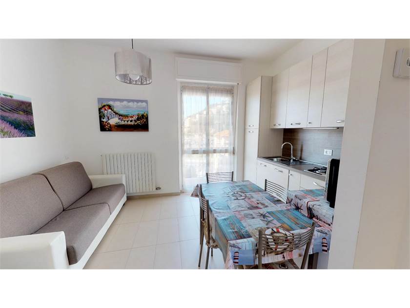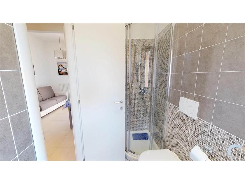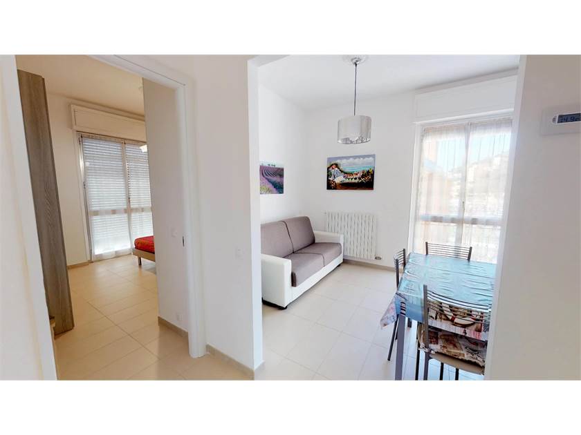 Appartamento completamente ristrutturato a nuovo e arredato modernamente e con gusto sito in complesso tranquillo in Via Guaraglia (150m. dal mare e a 200m. dal centro storico), in un complesso chiuso da cancello. Dotato di esposizione Sud-Ovest, sito all'ultimo piano (4°) con ascensore. Composto da una camera con letto matrimoniale, soggiorno con angolo cottura e divano matrimoniale, bagno con doccia e balconata. Posto auto condominiale, riscaldamento autonomo, gas metano e caldaia a gas (frigo col freezer, lavatrice, lavastoviglie, forno a microonde e televisore). Possibilità di box auto nello stabile.