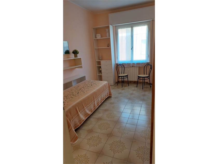 Ampio alloggio parzialmente ristrutturato in un contesto tranquillo e residenziale, chiuso da cancello automatico, nella richiesta zona di Viale della Repubblica (200 m. dal mare). Dotato di esposizione Sud-Ovest, sito al penultimo piano (3°) con ascensore. Composto da una camera con letto matrimoniale, camera con due letti, soggiorno con angolo cottura e divano matrimoniale, bagno ristrutturato con doccia, ingresso, ripostiglio e n°2 balconi. Posto auto condominiale, riscaldamento centralizzato, gas metano e caldaia a gas (frigo col freezer, lavatrice e televisore).