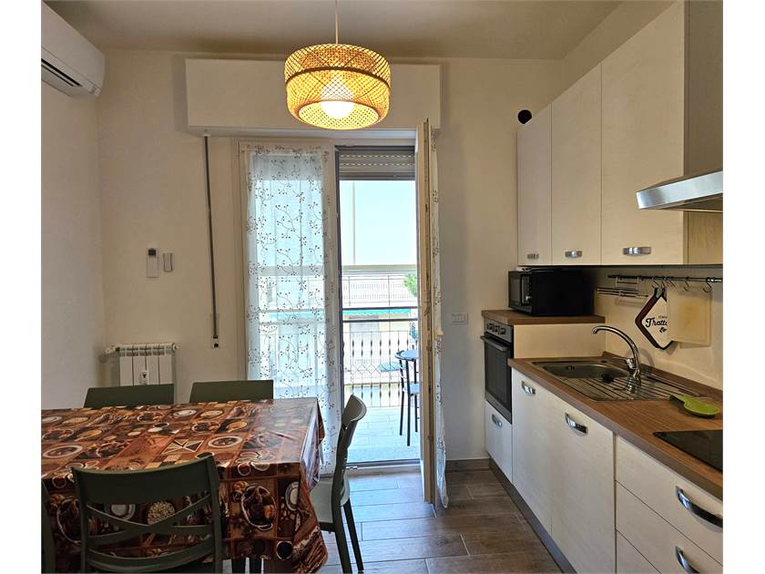 Trilocale totalmente ristrutturato a nuovo e arredato con gusto in un contesto tranquillo e residenziale, chiuso da cancello automatico, nella richiesta zona di Viale della Repubblica (200 m. dal mare). Dotato di esposizione Sud -Ovest, sito all’ultimo piano (3°) senza ascensore. Composto da una camera con letto matrimoniale e letto singolo, sala da pranzo con divano matrimoniale, cucina abitabile, bagno con doccia e n°2 balconi. Posto auto condominiale, aria condizionata, tende da sole elettriche, boiler elettrico (frigo col freezer, lavatrice, lavastoviglie, piano cottura a induzione e televisore).