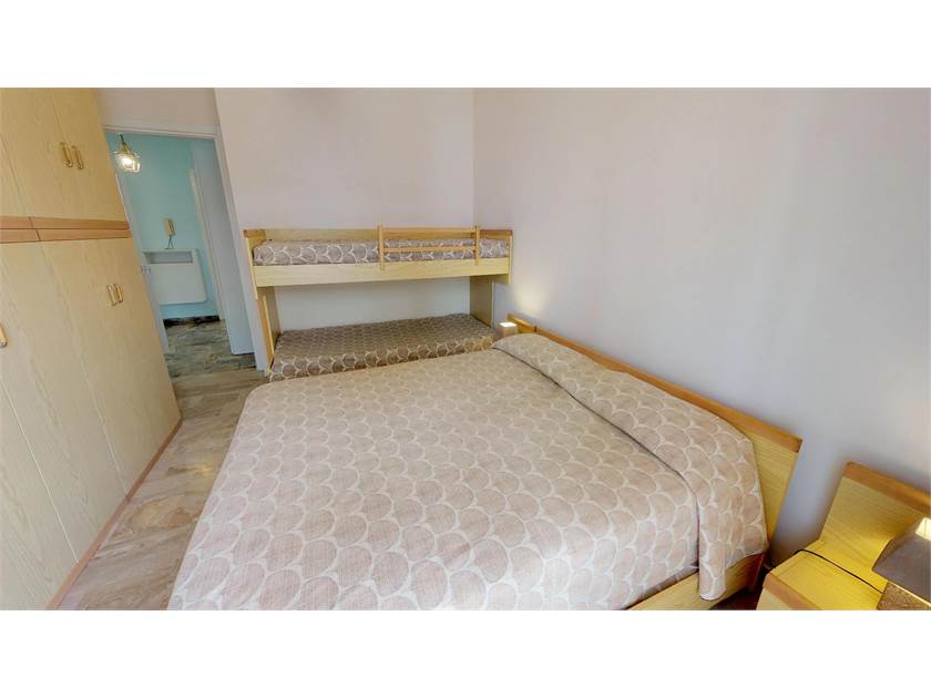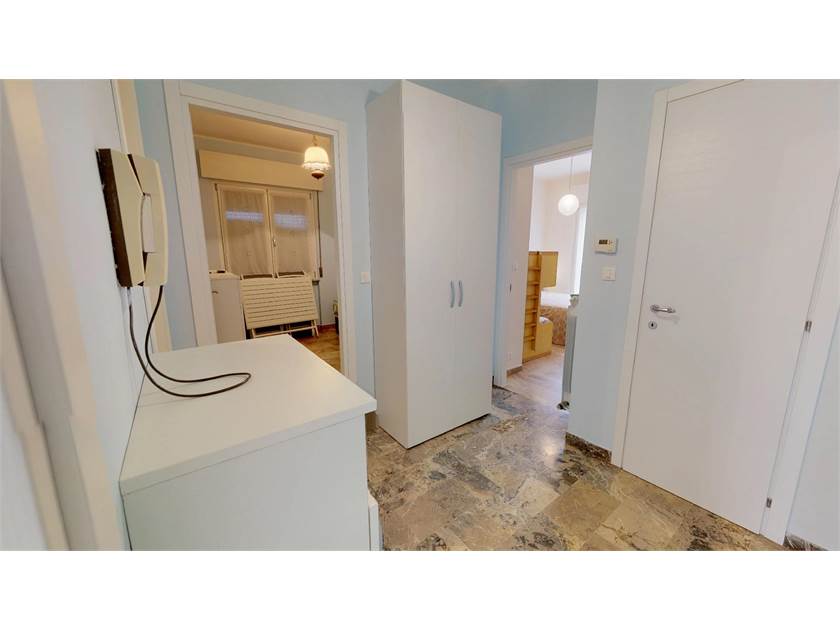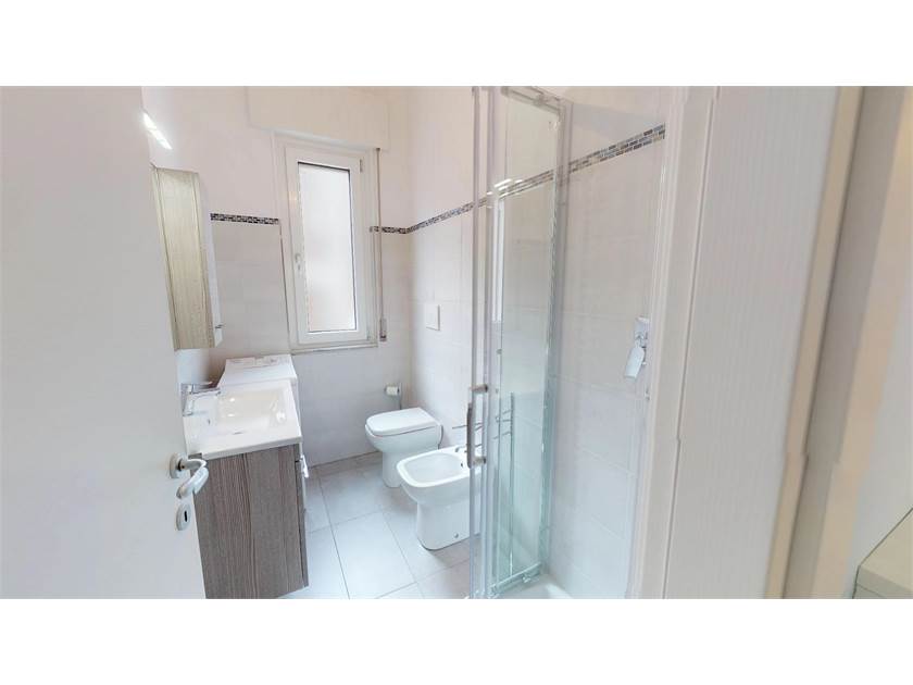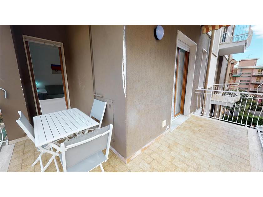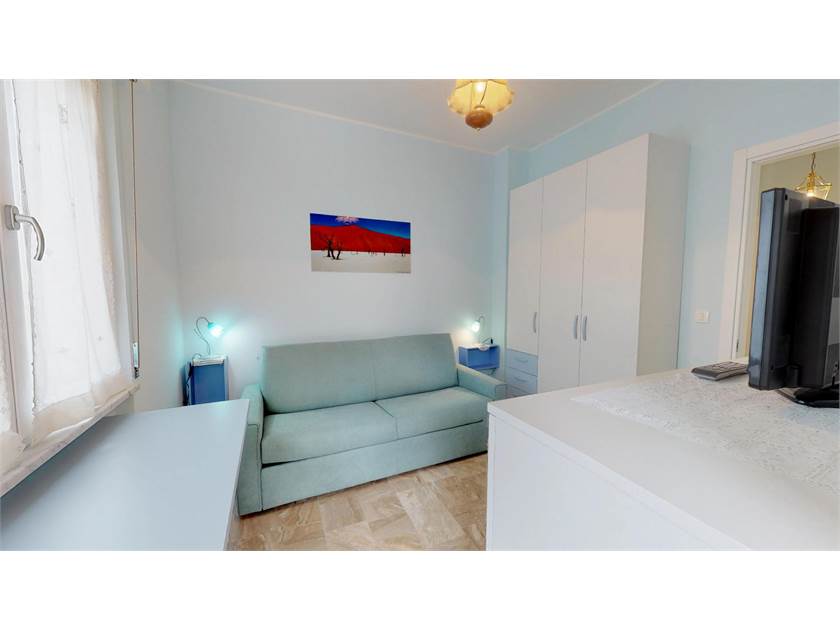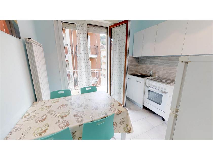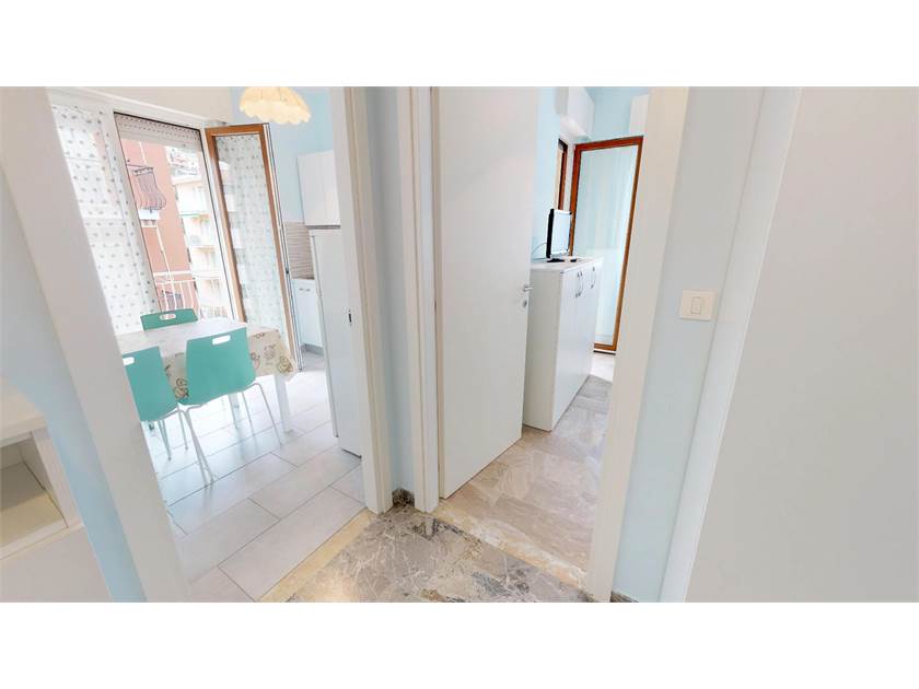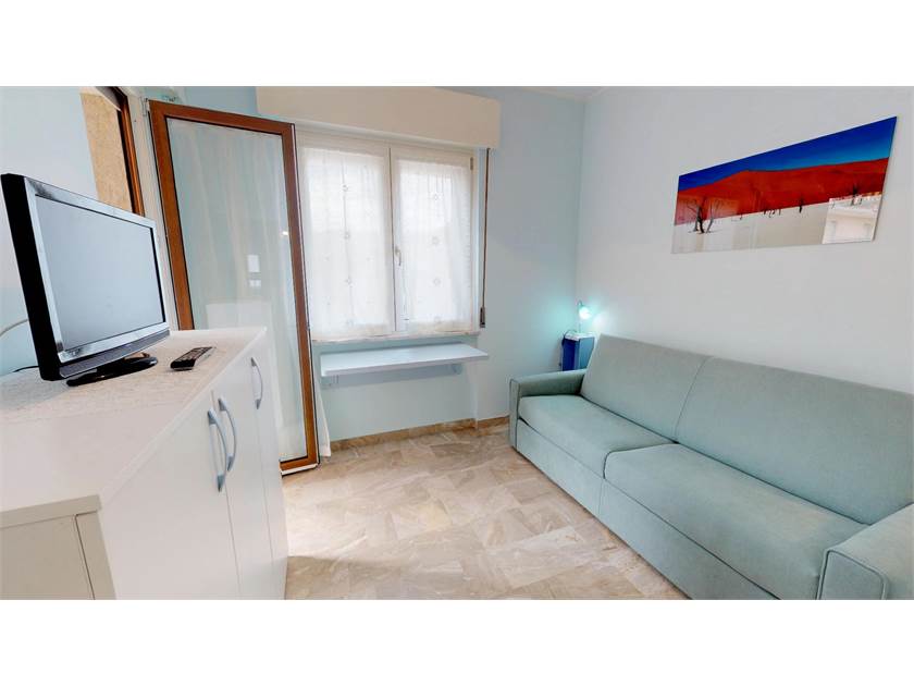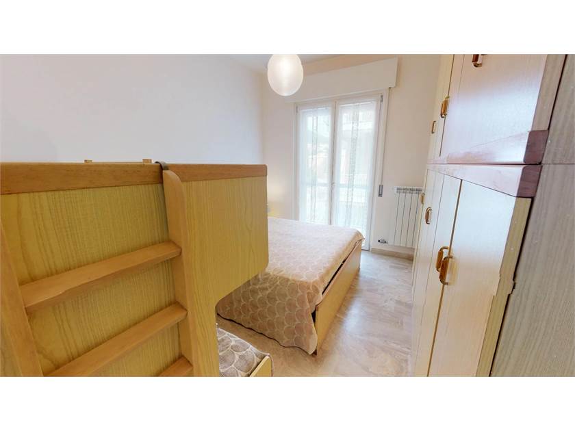 Ampio trilocale totalmente ristrutturato ed arredato piacevolmente sito in un complesso tranquillo all'inizio di Via N. Sauro (300m. dal mare). Dotato di tripla esposizione Est-Nord-Ovest, sito al penultimo piano (3°) con ascensore. Composto da una camera con letto matrimoniale e letto a castello, sala con divano matrimoniale, cucina abitabile, bagno con doccia, ingresso, ripostiglio, balcone e terrazzo. Posto auto privato, riscaldamento centralizzato a ore, gas metano ed acqua calda centralizzata (frigo col freezer, lavatrice e televisore).